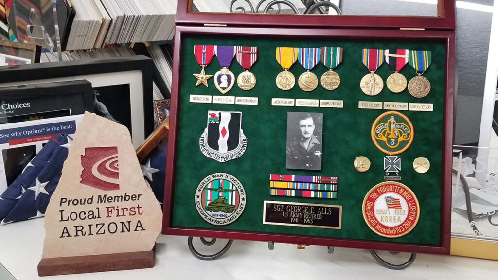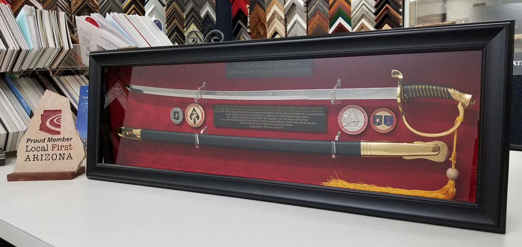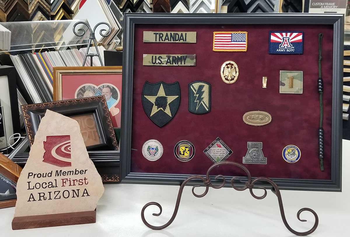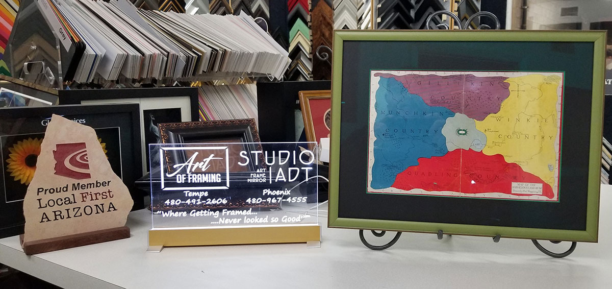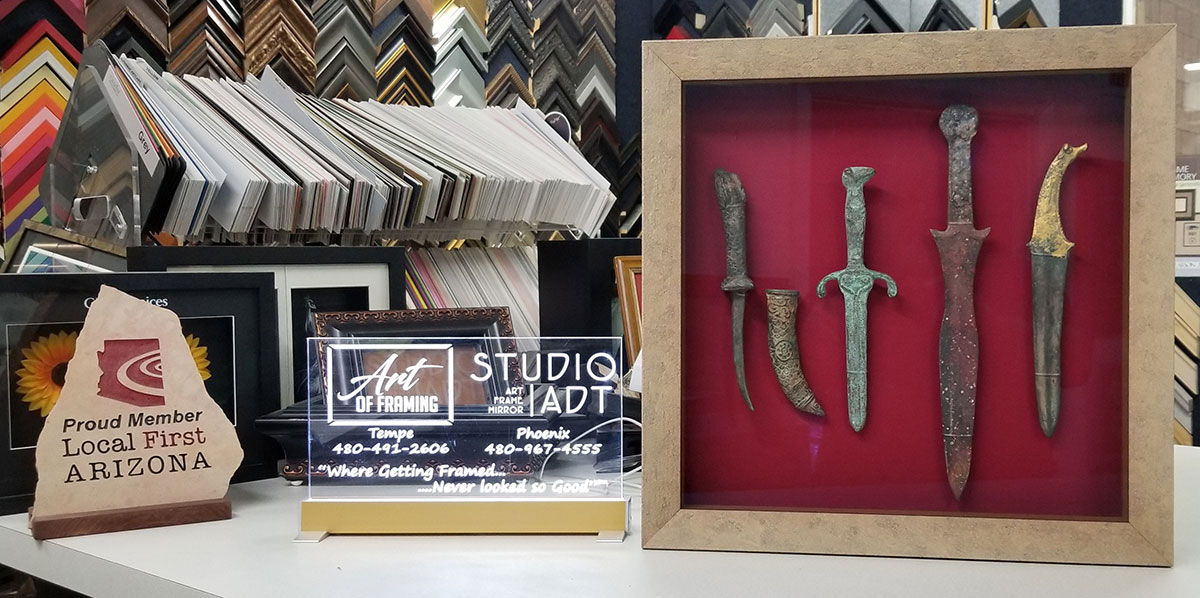 All custom framing projects are completed in our production facility in Phoenix by our expert framers with more than 25 years experience who take pride in their work and are dedicated to absolute customer satisfaction. With our wide selection of frames, competitive pricing and professional advice, it is no wonder that highly regarded artists, facility managers, architects, and interior designers choose to work with our team.