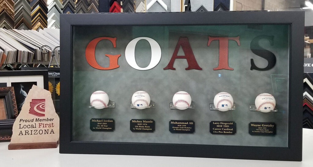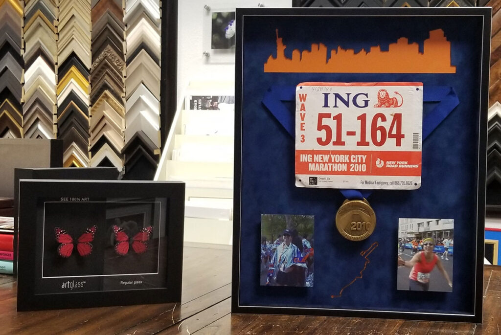 We carefully assemble frames that can complement a fun poster print, enhance a contemporary or classic painting or protect your valuable sports memorabilia and collectibles. We have served thousands of happy customers with their framing needs by offering design solutions from the simple to the complex using museum quality materials and an impressive selection of frames, mats, glass and mirrors.